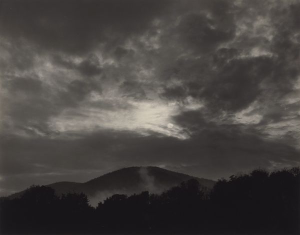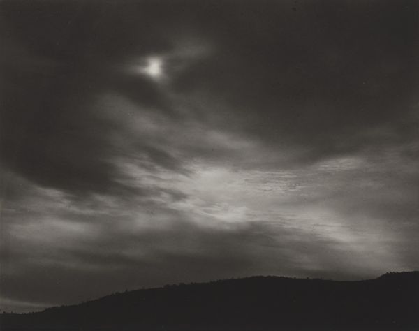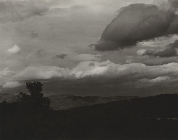 Alfred Stieglitz made this photograph, Lake George, with gelatin silver. It’s not just a snapshot; it’s built, layered, like a painting. Look at the sky! Those clouds are alive – they’re the main event, the drama. Stieglitz coaxes a whole range of grays, a real material presence out of them. It’s almost like you can feel the wind up there. The dark land gives the clouds their stage. Think about the darkroom as a studio. Stieglitz isn’t just recording what’s there; he’s playing with light and dark, dodging and burning to get this weight. He’s making this image, bit by bit, just like a painter builds a picture. You see that conversation again and again with someone like Gerhard Richter, who painted from photographs. It makes you think about what 'nature' really means when an artist gets their hands on it.