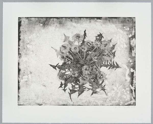 Editor: Here we have Jan Petrus Ponstijn’s "Dead Bird with Skull," a print made with etching techniques, dating from 1940-1948. It’s incredibly stark, the skeletal bird a powerful image of mortality. What strikes you most about this piece? Curator: I see a potent symbol of vulnerability, particularly resonant when considering the period in which it was created. The imagery clearly evokes 'memento mori,' but what does it mean to depict this in a time already saturated with death and uncertainty? It’s almost as if Ponstijn is asking us to confront the brutal reality of existence stripped bare. Editor: So, beyond the vanitas theme, you see a specific commentary related to its historical context? Curator: Absolutely. Think about the pervasive sense of loss and trauma following the war. Ponstijn, through this delicate yet brutal etching, uses the bird as a symbol of lost innocence and broken potential, something fragile destroyed. Consider too how this might mirror the position of the Netherlands under Nazi occupation at the time. Do you think the rough, almost violent etching style enhances that reading? Editor: Definitely, the harsh lines and textures really emphasize the violence done to the bird, reflecting maybe a violence done to society as a whole. Curator: Exactly. And consider the socio-political dynamics that informed Ponstijn’s artistic vision, shaped by his experience as a Dutch artist working during a time of tremendous upheaval and oppression. The artwork therefore becomes more than just a memento mori; it’s a sociopolitical statement, using death to confront systems of power and social breakdown. Editor: That gives me a lot to think about. I was initially struck by its simplicity, but now I see how the layers of meaning reflect complex social and political realities. Curator: And it shows how understanding the historical context is absolutely key to appreciating the power of art as activism.