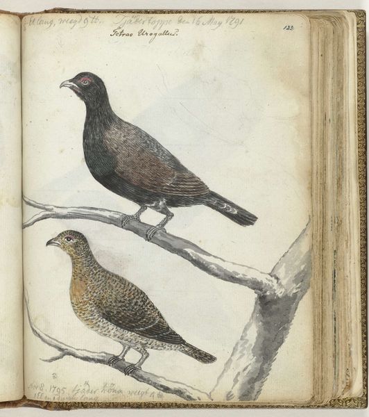 Jan Brandes, a Dutch clergyman and artist, created this watercolor of a "Kaapse vogel" or Cape bird, during his travels in the late 18th century. Brandes was employed by the Dutch East India Company, and his images reflect the intersection of scientific exploration and colonial expansion. Brandes's detailed rendering of the bird, set within the pages of a bound book, evokes the tradition of natural history illustration which served both scientific and aesthetic purposes. Yet, these images were also products of a colonial gaze, documenting and classifying the natural world for European audiences. The act of naming—'Alauda copensis'—asserts a kind of ownership, an imposition of European systems of knowledge onto the local environment. Consider how the intimate scale and delicate rendering might invite a sense of wonder, while the broader context reminds us of the complex power dynamics inherent in the representation of the natural world. Brandes’s "Kaapse vogel" is a beautiful artifact, yet it also serves as a reminder of the complicated legacy of colonialism.