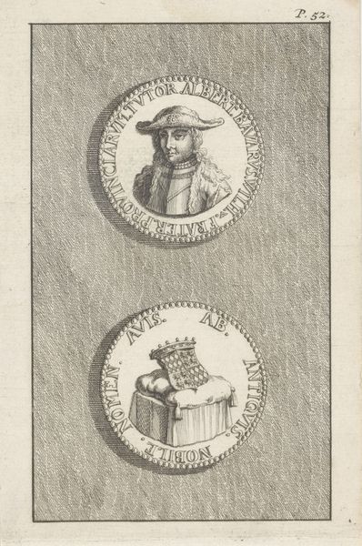 Curator: So, let's talk about this quirky little artwork, "Sweden, 2 Kronors" from the "Coins of All Nations" series, a print created in 1889 by W. Duke, Sons & Co. It's part of the Met's collection. Editor: It's wonderfully bizarre! It looks like a strange fusion of portrait and still life. My first thought is, "What on earth…?" Curator: Precisely! It's one of a series of trade cards the tobacco company used to stiffen cigarette packs and entice consumers with collectible art. In a clever conflation of commodity and culture, they blended caricatures with the image of circulating currency from around the globe. Editor: So, almost a satirical jab at capitalism then? Turning money into a walking, talking advertisement. I notice the chap is dwarfed, almost weighed down by the Swedish coin, but he sports the world's biggest fur hat. It's pure vaudeville. Curator: In a way, these cards democratized art; it was cheaply made art designed to be discarded and shared and not a hallowed masterpiece in a gilded frame. You could argue it was a precursor to internet memes or modern trading cards, if a bit culturally insensitive perhaps. Editor: Absolutely. And look at the style! It seems to pull inspiration from ukiyo-e, those playful Japanese woodblock prints with the elongated figures and exaggerated expressions. Is the artist making some cheeky claim on global influence? The world brought to you via tobacco. Curator: Potentially. The coin, with its intricate heraldry featuring the crowned lion, looks genuinely imposing. This lion seems fierce; like the little guy can barely hold on. But, then below the coin, it literally gives the value of it, like an antique novelty coin that seems kind of tongue-in-cheek! Editor: It's strangely endearing, though. A humble attempt at global art. Perhaps not profound, but certainly provocative in its odd way. The fact it was printed for Duke cigarettes brings an added layer of intrigue. It is, perhaps, the "Mad Men" of art. Curator: That it is. Thank you for your keen observations!