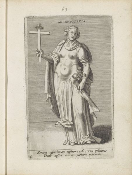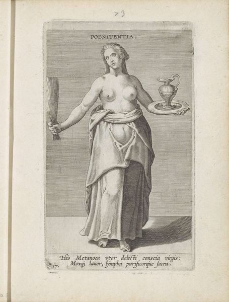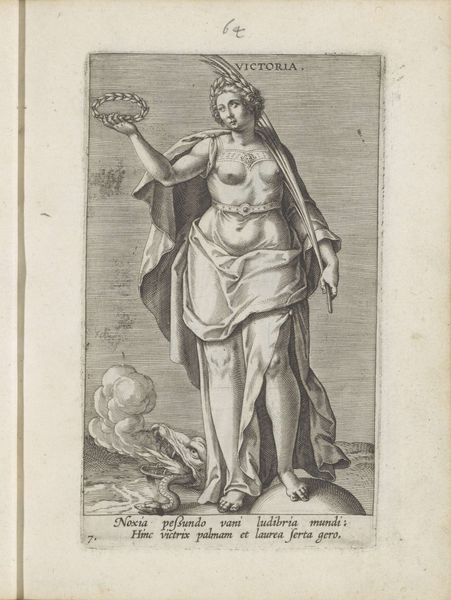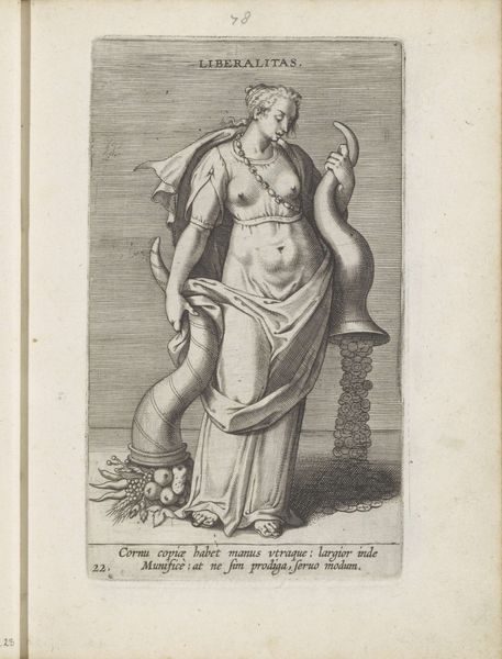 Curator: This is "Natuur," an engraving created circa 1585-1590 by Philips Galle. It's currently held in the Rijksmuseum collection. The work presents a complex allegorical figure. Editor: It's…striking. There's a distinct sense of unease conveyed through this strange, composite figure and its rather grim materiality. The detail achieved through engraving is certainly impressive. Curator: Galle, deeply rooted in Mannerism, engages with humanist philosophy here, presenting his interpretation of the natural world through this intriguing allegorical representation of nature itself. We must read this figure as a manifestation of ideas about nature that were prevalent in the late 16th century. Editor: Interesting. For me, the key to understanding this print lies in deconstructing its materiality, thinking through the physical labour involved. Note the contrasts – the smoothness of the body against the texture of the animal heads and how they are joined on what looks like a fluted plinth; this creates a powerful statement regarding control of and distance from nature. What kind of consumption were audiences engaging in then, and how does the piece perform that consumption for us now? Curator: Consider the tension between the overtly feminine top half of the figure and the somewhat grotesque arrangement of animal heads forming the lower body. Galle is using this iconography to convey ideas about fertility and abundance, but the inclusion of predators disrupts this interpretation. Is it commentary on the dangers and challenges of nature, perhaps? This also challenges the place of women within the narrative of naturalism. Editor: Precisely. But where did the material come from to develop such an idea? Galle almost certainly used existing, classical images as a source. Also, consider the engraving process itself. It's a mechanical means of reproduction, fundamentally altering and manipulating our understanding of "nature" and making that accessible on paper to a large buying public. Curator: So, as we reconsider the legacy of colonial exploitation of the natural world and environmental issues facing contemporary society, how might a viewer consider the place of such a piece that simultaneously celebrates, commodifies and threatens nature? Editor: For me, thinking about this print makes me realize that artistic practice reflects production values and the consumption of that practice. Ultimately, art acts as both subject and object for examining power, labour, and environment. Curator: I agree. The layering of symbolism with prevailing philosophies regarding nature exposes many points for meaningful contemplation in relation to intersectional issues. Editor: Indeed. A closer look unveils even greater depth.