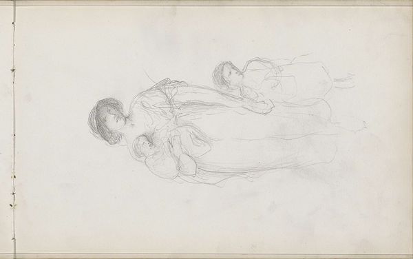 Curator: This is a drawing by Arthur Boyd Houghton, currently held in the Tate Collections. I find it particularly compelling. Editor: Yes, there's a raw quality about it. The infant's expression seems almost… accusing. Curator: The quick, light strokes suggest a study of movement, perhaps for a larger composition. Consider the economic accessibility of paper and pencil during Houghton's time. Editor: I wonder what he intended to convey with that gaze. It's more than just observation; there's an emotional intensity. Curator: Absolutely. The rapid execution and use of humble materials emphasize accessibility and process over polished presentation. Editor: It's a powerful piece precisely because of its unrefined nature. It feels so immediate. Curator: Indeed, and studying its creation reveals much about the artist’s working methods. Editor: Looking at this has made me rethink what I know about Houghton's work. Curator: Me too. It is always interesting to consider the material conditions in which an artwork is made.
