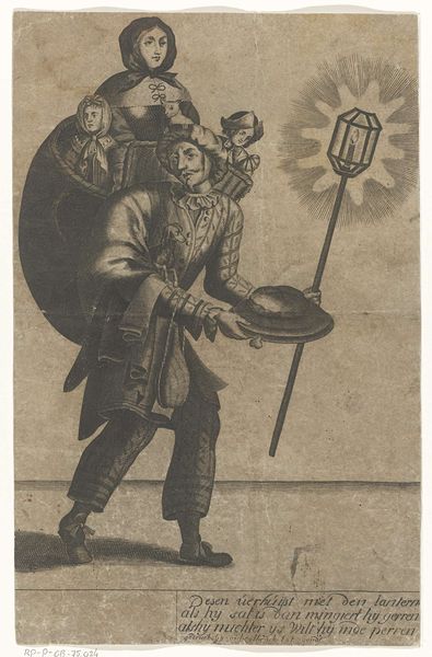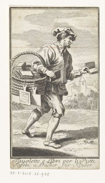 This is Jacob Gole's "Schoenenverkoper," or "Shoe Seller," an engraving made in the late 17th century. Here we see a wandering merchant carrying his wares, a potent symbol of commerce and daily life. But look beyond the surface. This humble shoe seller, burdened yet mobile, echoes the ancient archetype of the wanderer. Consider, for example, how the figure of Hermes, messenger of the gods, is often depicted in a similar pose, staff in hand, traversing worlds. The simple act of walking, of bearing burdens, becomes a metaphor for the human journey itself. The shoes, dangling like strange fruit, evoke a primal need: protection for our feet, grounding us to the earth. Think back to Van Gogh's worn-out shoes. They evoke something deeply personal and universal. These echoes resonate through time, reminding us that even the most mundane objects can carry profound psychological weight, tapping into our collective memories and anxieties. The wandering shoe seller becomes an allegorical figure of human resilience. A testament to the cyclical nature of trade and the enduring human spirit.