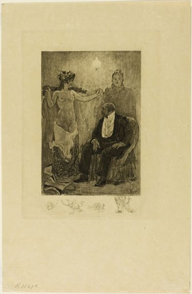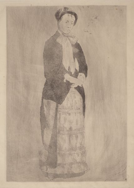 James Abbott McNeill Whistler made this lithograph of Robert de Montesquiou using greasy crayon on a stone matrix. Whistler was above all interested in the evocative qualities of his materials, and this print is no exception. Here, the velvety black crayon yields a range of subtly modulated tones. Notice how the texture of the lithographic stone itself seems to come through in the final print, giving the image a slightly blurred, atmospheric quality. The lithographic process, although complex, allowed for a relative ease of reproduction, which in turn made art more accessible to a wider audience. The image speaks to the democratization of art through printmaking; though portraying an aristocratic subject, the medium itself challenges traditional hierarchies of artistic production. Whistler here elevates printmaking to the level of fine art, urging us to reconsider our assumptions about artistic value. Ultimately, this work is as much about the materials and process as it is about the sitter.
