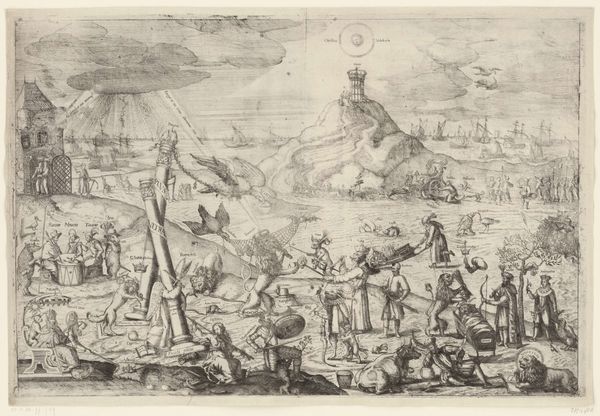 Paul Bril painted "River View with Large Rock" in oil on copper, sometime before his death in 1626, a period marked by religious and political upheaval across Europe. Bril, who lived and worked in Rome, draws us into a meticulously rendered harbor scene. The painting reflects the economic realities of the time, the busy port filled with people engaged in trade and labor. However, it’s also the way Bril orchestrates our gaze that's interesting. Our eyes are drawn to the tower perched high above, a symbol of power and authority, and then downward, toward the common folk. We may wonder about the lives of those building ships or simply seeking shelter by the shore. Bril invites us to consider the spectrum of humanity contained within this landscape. "River View with Large Rock" is more than just a pretty picture. It’s a social tableau that reflects a world in transition and asks us to reflect on the diverse experiences and hierarchies that shape our societies.