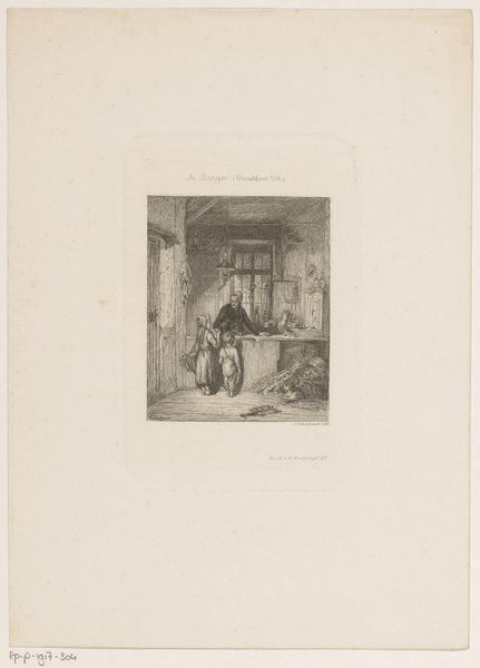 Léon Augustin Lhermitte created this print, ‘Interior of a Grocery Store,’ capturing a moment in everyday life. Dominating the scene is the scale hanging from the ceiling, a symbol of balance and justice. Scales have been used since ancient times, not merely for trade but also as potent symbols. Think of the Egyptian weighing of the heart ceremony, or the scales of justice held by the Greek goddess Themis. This motif, the scale, transcends time, appearing in various contexts to convey fairness and equilibrium. Here, in this humble grocery store, the scale’s presence speaks to the human desire for fairness in our transactions, but it also suggests a deeper, perhaps subconscious, yearning for balance in life itself. It evokes an emotional undercurrent, reminding us of our continuous pursuit of equilibrium amidst the chaos of existence. Such symbols reveal our shared cultural memory, demonstrating how deeply ingrained images can shape our perceptions across eras. The scale evolves, yet its core message persists, echoing through time and touching our collective psyche.