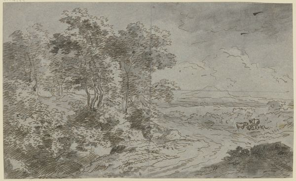This pencil drawing, "Ansicht der Festung Portoferraio auf der Insel Elba" by Theodor Pelissier, presents us with a scene dominated by the serene yet stoic presence of trees. Trees, those silent witnesses, carry deep symbolism throughout time. Consider the tree of life in ancient mythologies, connecting the earth to the heavens. These arboreal figures have consistently represented growth, stability, and the cyclical nature of life across cultures. Here, they frame the distant fortress, yet their presence is melancholic, imparting a sense of introspection. We might recall similar motifs in romantic landscapes where trees evoke a contemplative mood, reflecting humanity's connection with and alienation from the natural world. This echoes in the collective memory, stirring feelings of nostalgia and perhaps even a subconscious longing for the past. The image invites us to reflect on the subtle, enduring power of nature's symbols and their ability to engage our emotions across generations.