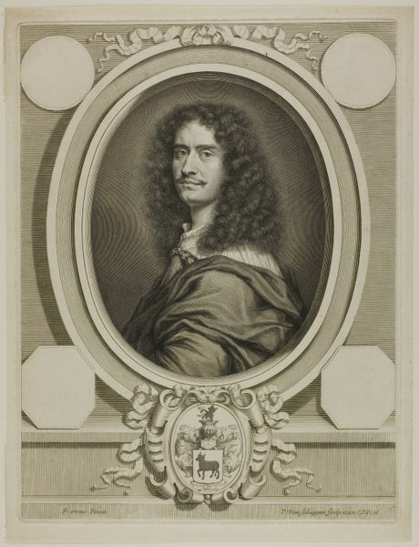 Here we see Samuel Cooper’s likeness of Charles II, King of England, contained within an oval frame. The immediate impression is one of sumptuousness, defined by the dark, flowing curls of the wig, the lace collar, and the royal blue sash. The painterly surface has a rich texture with vibrant colours, giving depth to the King's features and attire. Cooper masterfully employs the formal elements to convey status and power. The composition, neatly contained within the oval, focuses attention on the King’s face, composed yet confident. Cooper uses color to denote status; the opulent blues and reds, along with the gold embellishments, signify royalty. Semiotically, these are visual codes that underscore Charles’s position. The use of light and shadow adds to the drama. By destabilizing the conventional symmetry of portraiture, Cooper suggests a dynamic, living presence. This asymmetry disrupts any fixed or predictable reading, embodying the complex power relations of the time. It encourages ongoing interpretation.