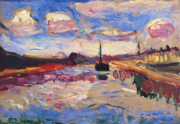 Curator: Renoir's "Lighthouse and Fort Carre Antibes," painted in 1916, captures the Mediterranean landscape in his signature impressionistic style. Editor: It's dreamy. The soft palette almost dissolves the fort and lighthouse into the sky; there is a hazy luminescence. Curator: Right, Renoir favored plein-air painting at this stage in his career, focusing intensely on how light interacts with color and form. One could argue that the physical labor itself--working outdoors, transporting his materials—became integral to his process. Editor: I am struck by the sociopolitical context—World War I was raging during 1916, and Renoir painted this idyllic scene far from the front. But how much did the shadow of war truly stay afar? This serene, perhaps even escapist, imagery can be interpreted as a reaction to those times of violence. Curator: That's interesting. For me, what’s compelling is Renoir’s almost nonchalant brushwork. See how the paint is applied in short, broken strokes? He is capturing the momentary effects of light rather than meticulously rendering architectural details. Editor: And there's an element of gender politics, too. The figures in the foreground seem to be women and children. Consider the historical construction of women as symbols of peace and domesticity, especially when juxtaposed with the distant yet symbolic fort and lighthouse that speak to patriarchal power. Curator: That is definitely something to consider. Now, the choice of oil on canvas – a readily available and transportable material – underscores the portability of his artistic practice at this stage, not forgetting its industrial availability that enabled Renoir to get back to the site daily and concentrate his vision on the same views again and again. Editor: We cannot ignore how he filters his observations, crafting an appealing representation of the location rather than documenting stark reality. As we unpack the scene's complexities, the symbolism, social concerns, and historical context enrich our experience of this artwork. Curator: Indeed. Analyzing Renoir's materiality, in concert with these considerations, has definitely added more nuance to our interpretation. Editor: It makes us consider how much any landscape hides the world and history we might wish it to show.