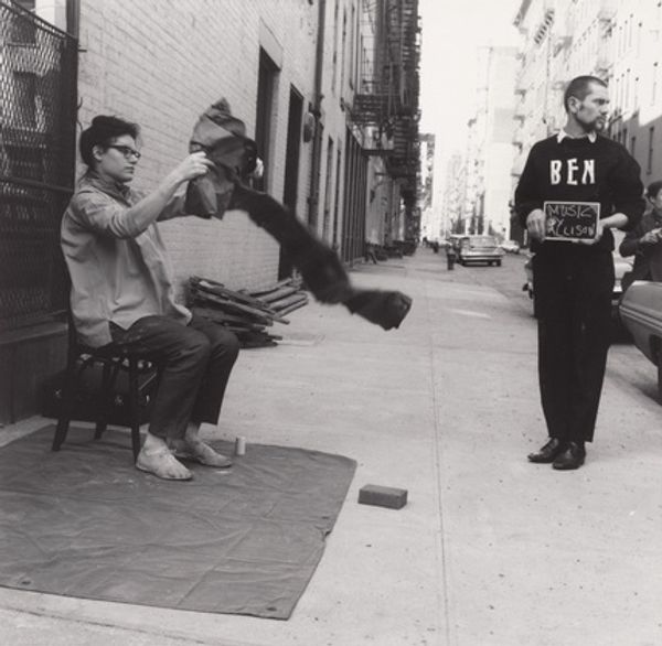 Leon Levinstein made this photograph, Houston Street, New York, using gelatin silver. It’s an image pulsing with off-kilter energy. Levinstein's eye seems to be searching for meaning in the everyday, finding these little moments of strangeness. The way the light catches the figure in mid-air gives him an almost spectral presence. The high contrast in the image, the way the black clothing almost blends in with the background, makes the scene feel urgent and immediate. Look at the sharp lines of the wall behind the players, compared to the blur of the moving body. It creates this push and pull, between stillness and motion, presence and absence. It’s a reminder that photography, like any art form, isn’t just about capturing a moment, but about creating a new way of seeing. It makes me think of Garry Winogrand and his chaotic street photography. Both artists find beauty in the raw, unscripted moments of urban life. It’s like they’re saying, "Hey, look at this! Isn't it weird and wonderful?"