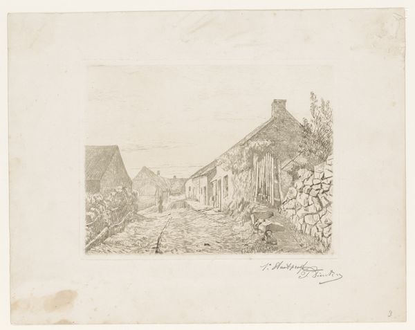 Johannes Frederik Engelbert ten Klooster made this drawing of the Veere neighborhood with ink on paper. It’s like a quick sketch, a moment caught, all in these confident lines. I love how the ink defines everything, even the light. Look at the little dog sitting by the building. The marks are so descriptive you just know what kind of dog it is. The artist isn't afraid to leave spaces open, like the suggestion of foliage, all scratchy and free. There is an openness that invites you to imagine the scene yourself. The power of a simple line, you know? It makes me think of other artists who use line in their work. It reminds me of Picasso’s etchings, but more folksy. It’s about seeing and making, keeping the conversation going.