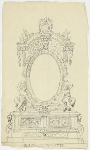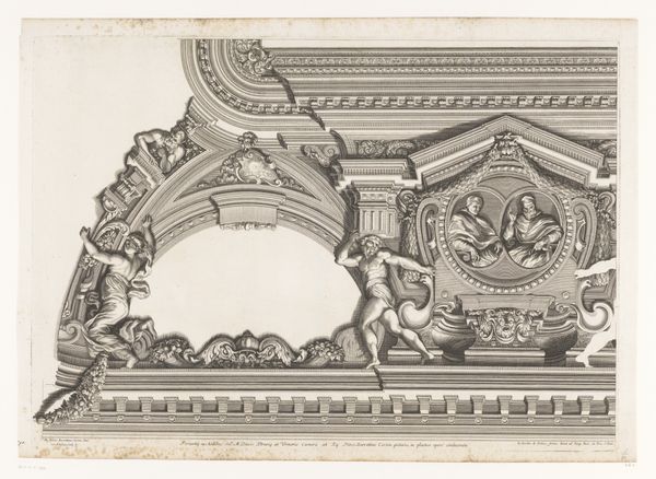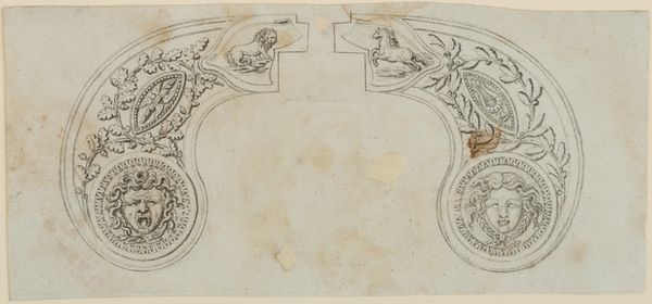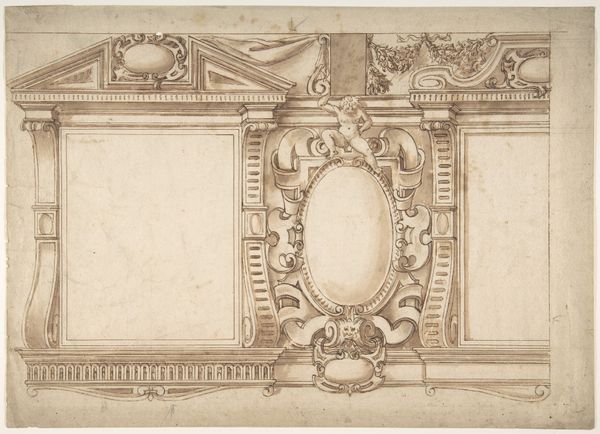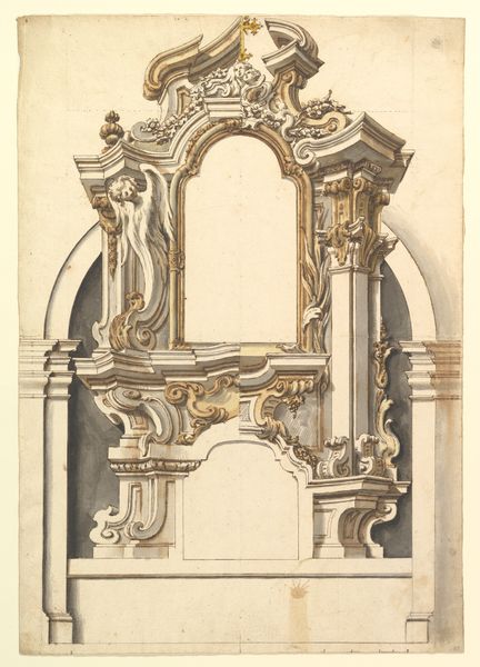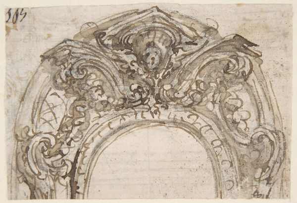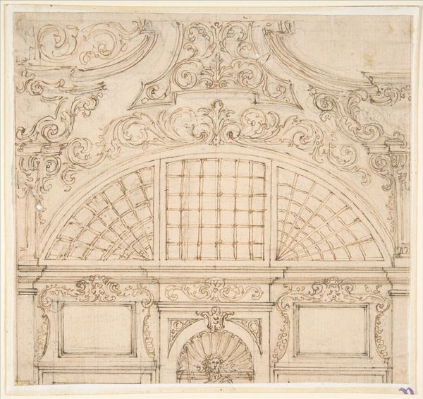 This drawing of an elaborate arch was made with pen and brown ink on paper. The anonymous artist used the drawn line to convey the arch's complex forms and ornamentation, including volutes, garlands, and sculpted figures. The material of the drawing gives us insight into the envisioned material of the arch itself, likely limestone or marble. The drawing is not only a rendering but also a guide. It would have been used by highly skilled stone carvers to realize the design in three dimensions. Consider the labor involved in such a project: quarrying the stone, transporting it, carving the intricate details, and finally erecting the arch. This design represents the wealth and power required to commission such an elaborate structure. Thinking about the materials and making of this drawing, and the arch it represents, helps us understand its cultural and social significance. The skill of the artist, and of the many artisans who would have been needed to realize the design, are equally important to the story of this object.