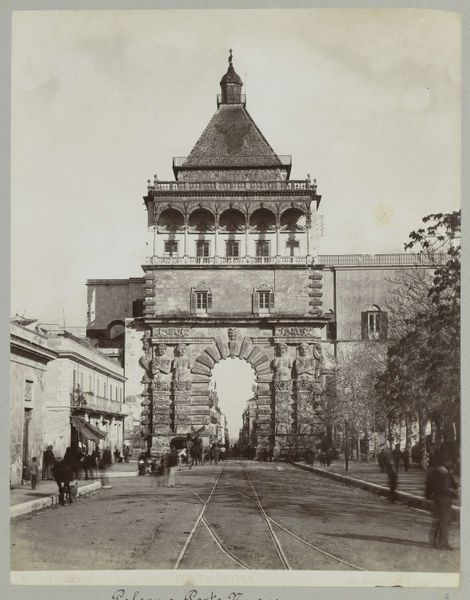 Giorgio Sommer created this albumen print of the Porta Nuova in Palermo, Sicily, at an unknown date. Sommer’s image presents the gate not just as a piece of architecture but as a representation of Sicilian history and power. The Porta Nuova, originally built in the 16th century and later rebuilt, marked a ceremonial entrance to Palermo and embodied the complex layers of Sicilian rule, from the Spanish to the Arabs. The architectural style, blending Norman and Arab influences, speaks to Sicily's diverse cultural heritage. The photograph’s focus on this gate suggests a commentary on Palermo as a gateway between different worlds and eras. Historians studying such photographs delve into archives and historical documents, and architectural studies, examining the cultural and political contexts in which the photograph was produced and the gate itself was built. Through this research, we can better understand how images like this reflect and shape our understanding of cultural identity.