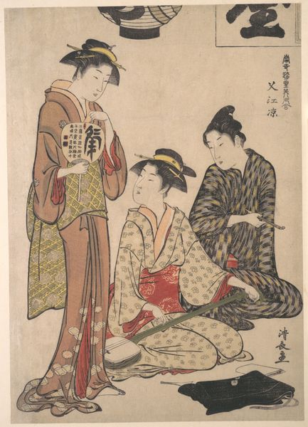 Katsukawa Shunchō created this woodblock print, "Three Beauties," in Japan in the late 18th century. These images of beautiful women, or “bijinga,” were a popular genre of ukiyo-e prints during the Edo period. They offer us a window into the era's aesthetic ideals and social values. Shunchō’s work captures the refined elegance of courtesans, who were tastemakers in fashion and culture. Their elaborate hairstyles, exquisite kimonos, and graceful poses reflect the sophisticated world of the pleasure quarters. These prints were not simply portraits; they were carefully constructed representations that spoke to contemporary notions of beauty, status, and desire. The patronage of these images also involved the cultural and economic institutions of the time. To fully understand this print, we can turn to a range of sources: historical documents, fashion trends, and the social history of the pleasure quarters. By doing so, we can appreciate the complex interplay of art, commerce, and society in Edo-period Japan.