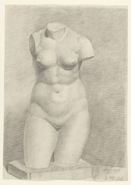 Curator: Standing before us is "At the Threshold", a marble sculpture crafted between 1912 and 1920 by Edith Woodman Burroughs, now residing here at The Met. Editor: It’s arrestingly serene. The smooth, pale surface of the marble gives the figure a spectral, almost dreamlike quality. Her slightly downcast gaze makes it feel very contemplative, almost melancholy. Curator: Burroughs was deeply engaged with representing female experience. In the context of early 20th-century America, the depiction of a pregnant nude woman was transgressive, a deliberate engagement with ideas around motherhood and the female body that were not openly discussed at the time. She reclaims classical form to discuss modern feminist thought. Editor: The composition adheres to a classical canon—contrapposto is very obvious here. But there’s something distinctly modern in the proportions; the slenderness and youthful air contrast with the very mature theme of imminent motherhood. And, of course, it must have been an exceptional technical feat to take something so cool and hard as marble and fashion a body so gentle in its curve. Curator: It’s vital to remember Burroughs’ participation in the burgeoning art scene in New York. Her work engaged in debates about women’s rights, artistic representation, and the shifting social landscape, contributing to discourses around feminine identity. By naming the piece "At the Threshold," she underscores a pivotal transition not just in the figure's life but, metaphorically, in the broader cultural understanding of women's roles. Editor: Looking closely, there is a roughened patch around the right ankle, in textural contrast with the polished smoothness elsewhere. Semiotically, it represents an awakening – a new growth as she enters motherhood. The placement of her left hand over her chest can be seen as a way of subtly emphasizing her physical body. Curator: Seeing it again through your eyes is a reminder that art from the past continues to provoke contemporary dialogues. The issues she explored with such precision are still relevant. Editor: Agreed. And focusing again on materiality, you find endless subtlety and nuance. The marble medium really contributes to this feeling that she’s not just stepping into a new role but is something new and wondrous coming into being.