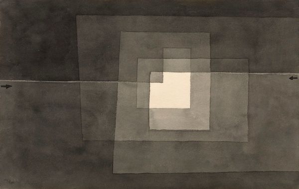 Curator: Laszlo Moholy-Nagy's "K VII," painted in 1922, pulls you into the artist’s evolving explorations of constructivism and abstraction. Editor: My first thought? It's strangely calming, like an architectural blueprint trying to achieve inner peace. There’s this interplay of boldness and subtlety that captivates. Curator: Absolutely. Moholy-Nagy was part of the Bauhaus movement, so he wasn’t just thinking about painting; he was also envisioning how art could shape design, technology, and even social progress. This piece exemplifies the movement's utopian visions. The careful arrangement of geometric forms evokes machine precision but also a sense of spiritual harmony. Editor: You know, I’ve always felt Bauhaus gets a bad rap for being cold, but you see so much playfulness and exploration here. What’s really striking is the stark red vertical line; it just cuts through all these soft grays and beige—a jolt to the eye, yet crucial to the whole composition. Curator: Right! It serves to disrupt our eye and add a dynamic tension. Moholy-Nagy saw light and color as tools. These forms aren't just floating on the canvas; they're interacting, pushing and pulling, defining space. It’s about activating the viewer, making us question how we perceive depth and dimension. Editor: He definitely does that! It’s a painting that asks questions, not just about art but about the possibilities of a new, rationally designed world. A world which perhaps did not come into being, in fact, or which took another, somewhat less inspiring route. And yet... it holds potential and hope in the power of simple shapes, beautifully balanced. It’s surprisingly human, despite the lack of recognizable figures. Curator: Indeed. Looking back, Moholy-Nagy's “K VII” isn't just a painting; it's a manifesto of possibility, a reminder of art's capacity to reshape our world, if only in our minds. Editor: Exactly. And on that note, I think I see new potential in the possibilities of lunch. Shall we?