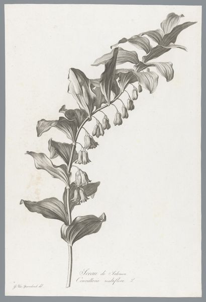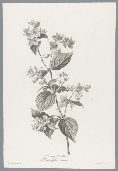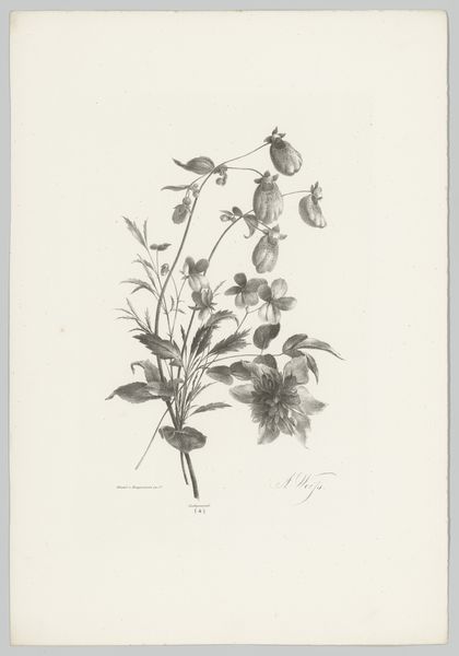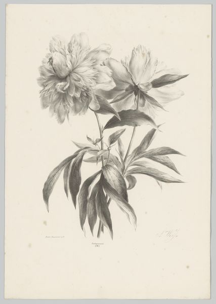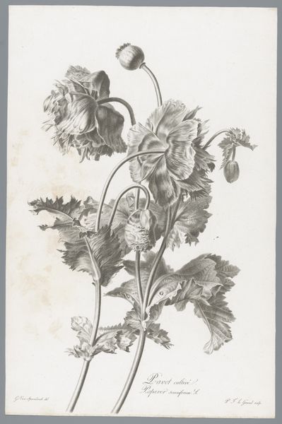 Curator: Before us is a graphite drawing entitled "Goudsbloem," created between 1799 and 1801 by Pierre François Legrand. Editor: It's surprisingly delicate. For a botanical study, I'd almost expect more scientific detachment. There's a softness here, a rendering of light that feels almost… romantic. Curator: Indeed. The Goudsbloem, or marigold, carries potent symbolism. Its golden petals are associated with the sun, warmth, and even resurrection in some traditions. The painstaking detail also suggests it was meant to represent inherent ideas around immortality and longevity. Editor: That dedication to detail—it must have been incredibly time-consuming! Imagine the hours bent over the paper, carefully building up the shading, one tiny stroke at a time. I'm struck by the labor, and even the cost, of acquiring that level of skill and the graphite needed. Not exactly accessible art. Curator: You are right. There's certainly a layer of social meaning embedded in the material. Also consider how botany and illustration were intertwined then – observing, documenting, ordering the natural world. This drawing serves both artistic and scientific purposes. Editor: And those broad leaves—they seem almost to cradle the delicate blooms. Is that an intentional visual cue, do you think? It's beautiful, the texture achieved with graphite is interesting. The contrast in surfaces really enlivens it. Curator: I believe so. There is a sense of shelter, protection. And in folklore, marigolds were used as protective amulets to ward off evil spirits and promote prosperity. So the artist might have consciously amplified this by this sort of nesting composition. Editor: It’s compelling how this artwork can lead into so many different ways of viewing, ranging from folklore to material production. Curator: And so ends our reflection on "Goudsbloem". Let us appreciate art as material and metaphor, interwoven in their significance.