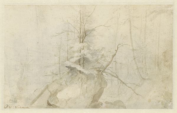 Editor: This is Dankvart Dreyer’s “Tree and Plant Studies,” made with pencil sometime between 1831 and 1852. I’m really drawn to the unfinished quality; it feels more like an investigation than a polished landscape. What catches your eye when you look at this drawing? Curator: Well, I immediately think about the materiality. We have to consider the kind of pencil Dreyer was using, how readily available and affordable it was, and what that says about artistic training at the time. Was drawing seen as a primary skill, a craft even, or merely a step towards painting? Editor: That's interesting. I hadn't considered the social implications of using pencil. Curator: Exactly. Look at the labor involved in even this seemingly simple sketch. Someone had to produce that pencil, someone had to source the paper. Think about the consumption patterns that made this kind of art-making possible. And how does the "unfinished" quality challenge the hierarchy of finished versus unfinished artwork? Was this meant to be seen or just function as a preliminary study? Editor: I suppose it challenges our assumptions about what constitutes “art.” It's easy to overlook the means of production when we look at art in a gallery. Curator: Precisely. And how the means of production determine our understanding of art. Do you think Dreyer considered these materialist aspects himself while rendering those delicate leaves and trees? Editor: Probably not directly, but by choosing pencil and paper, he was participating in a material culture with its own set of values and conditions. It definitely gives me a different perspective on a landscape drawing. Curator: Indeed. By acknowledging the material conditions of its making, we've expanded our appreciation for its significance.