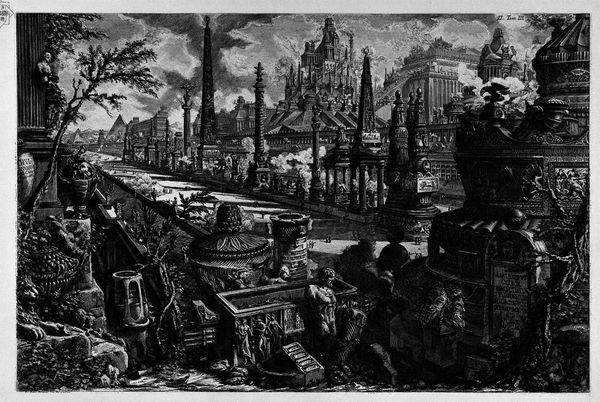 This is Plate XXXII from Giovanni Battista Piranesi's "The Roman Antiquities," made in the mid-18th century. During this period, Europe was captivated by the rediscovery of classical antiquity, yet Piranesi's Rome is not a romantic, idealized vision. Piranesi presents Rome as a city of ruins, a stark contrast to its former glory, reflecting the shifting tides of history and power. Note the figures dwarfed by the ruins of the Temple of Concord. They highlight the impermanence of human achievement against the relentless march of time. Piranesi’s work invites us to consider the themes of decay and memory, and the complex relationship between the past and the present. It’s a potent reminder that even the most powerful civilizations can crumble, leaving behind only fragments of their former selves. The emotional weight of this reality permeates the scene.