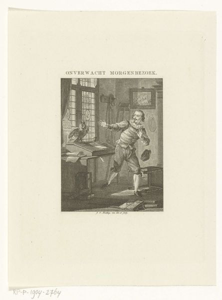 Editor: This engraving by Jacques Louis Copia, from 1808, is titled "Milord Edouard weigert te vechten met Saint-Preux"—it looks to me like Milord Edward refuses to fight Saint-Preux. I’m really struck by how this image depicts a tense moment, capturing a clear refusal, perhaps an ethical stand. How do you interpret this scene, looking at the work from a materialist lens? Curator: Considering this print through a materialist lens compels us to investigate the engraving process itself. Engraving, as a reproductive medium, made images accessible to a broader public, thereby democratizing narratives. How might this accessibility shape perceptions of honor and conflict among the different classes engaging with the image? Editor: That's a great point! The engraving allows this particular depiction of morality, maybe even class relations, to spread widely. Is there more to this work that would confirm that? Curator: Indeed. Examine the depiction of clothing and interior space, which communicates economic status. Milord's sword versus Saint-Preux's seated and seemingly intellectual pose underscores class differences. But I would encourage you to think about where those raw materials originate, and what industries benefited from it. Do you know if Copia used certain techniques in the service of Neoclassicism, which then served an agenda? Editor: I see what you mean, a class perspective adds more depth. What's next? Curator: Exactly! The physical act of producing the engraving - the labor involved, the tools utilized - contributed to the meaning we glean from it. Thinking about distribution and consumption of materials allows us to address hidden structures within the print. Considering materials, labor, and circulation together, do you see new connections emerging? Editor: I am beginning to appreciate how the very nature of the engraving, from its creation to circulation, profoundly influences how the narrative of class and moral refusal reaches its audience! Curator: Precisely. By understanding these material and historical underpinnings, we uncover deeper layers of meaning embedded within the artwork.