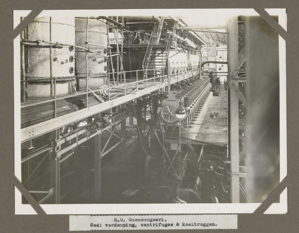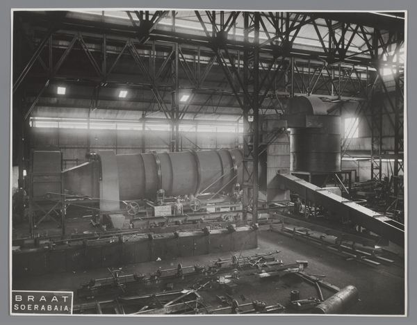 Editor: Here we have a fascinating photograph entitled "S.O. Goenoengsari. Rietcarrier en Crusher. 20-8-27." from circa 1927-1928, captured by Isken. It looks like a print, potentially archival. The sheer scale and angularity of the machinery is striking. What do you see in this piece from a historical context? Curator: What I immediately notice is the depiction of industrial progress in the Dutch East Indies, now Indonesia. The photograph serves as a document of the colonial sugar industry. Consider how photography, often commissioned, functioned as a tool to promote a narrative of modernization and order under colonial rule. The technical precision and stark realism glorify the mechanization of sugar production. Editor: So the photograph itself is part of a colonial project? It’s interesting how a seemingly straightforward depiction of machinery could be interpreted that way. Curator: Exactly. Think about who would have commissioned such an image and what purpose it served. Was it meant to reassure investors, impress potential collaborators, or demonstrate the supposed benefits of colonial infrastructure to the local population? And how does the composition, the sharp focus on the machinery rather than the workers, reinforce this power dynamic? Editor: I see what you mean. By focusing on the machines, it dehumanizes the labor involved. Are there other aspects beyond colonialism that strike you? Curator: Definitely. We can view it as a visual document of early industrialization in Southeast Asia, its impact on landscape, labor, and the emergence of new class structures in that region. It shows the social and economic changes spurred by such industrial advancements. Understanding this interplay of photography, colonial ambition, and industrial advancement is crucial. Editor: I hadn’t considered it in terms of visual propaganda before. This makes me consider the photographer's intentions more deeply, as well as how images like this shaped perceptions then and even now. Curator: Precisely. It’s a valuable reminder that art, especially something as seemingly objective as photography, is never truly neutral; it always exists within a social and political framework.