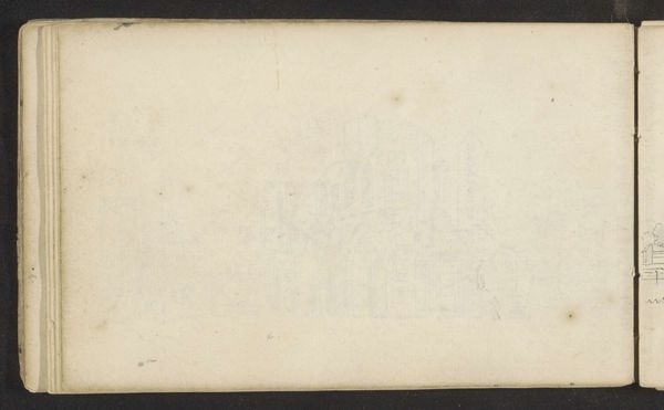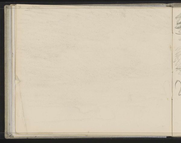 Curator: Looking at this work, "Blank page; verso: Male Portrait Head" by Sanford Robinson Gifford, I'm immediately struck by the contrast between the seeming emptiness of the page and the faint trace of a portrait on the other side. Editor: It’s a ghostly presence, isn't it? The textures of the paper itself become really prominent; I find myself focusing on the tooth of the page, the way it would have received the graphite. Curator: Exactly! The blankness allows us to consider the social function of portraiture itself. Who was Gifford attempting to capture, and why does only a trace remain? Does the absence speak to issues of power, visibility, and erasure? Editor: I see the materiality of the sketchbook page—its size, the binding—as suggestive of private practice, a space for working through ideas rather than making finished objects for consumption. Curator: I agree. It prompts questions about the artist's process, and how identity and representation are negotiated in the act of creation. Editor: It’s a fascinating glimpse behind the scenes. Curator: It really is, the glimpse behind the scenes revealing the means behind the artist’s method is always fascinating. Editor: A wonderful insight into Gifford's artistic practice.