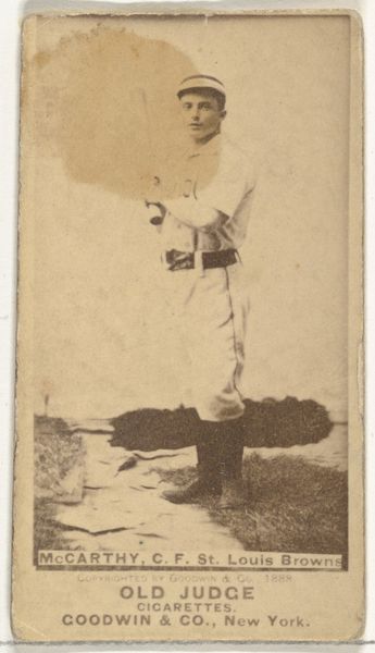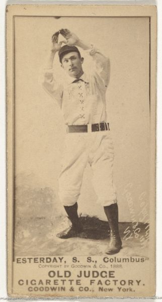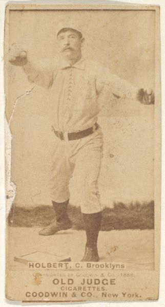 Goodwin & Company created this baseball card of David Elwood Rowe, manager of the Kansas City Cowboys, around 1888 as part of a promotional series for Old Judge Cigarettes. During this era, baseball cards were largely a vehicle for commercial branding, yet they also served as a window into the cultural values and social dynamics of the late 19th century. Rowe’s confident pose, and the card's distribution primarily to male consumers, speaks volumes about the construction of masculinity and leisure in a rapidly industrializing America. Consider how the commodification of athletes began shaping perceptions of fame and success. While celebrating individual achievement, the card also indirectly reflects the labor and economic systems that were becoming entrenched in professional sports. It invites us to consider the intersections of sport, commerce, and identity in American culture.