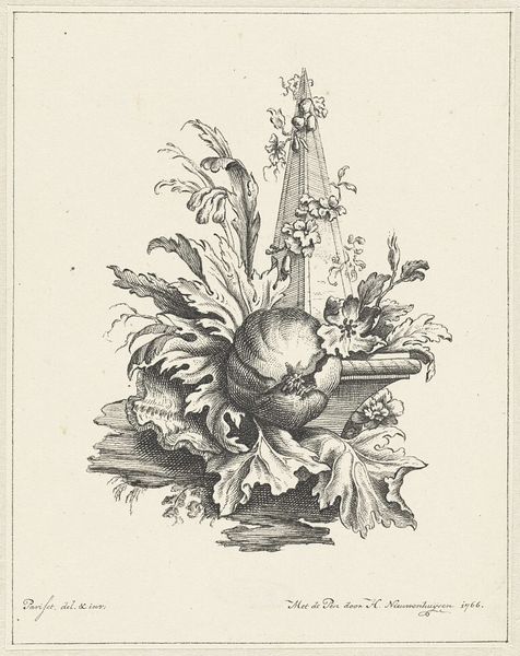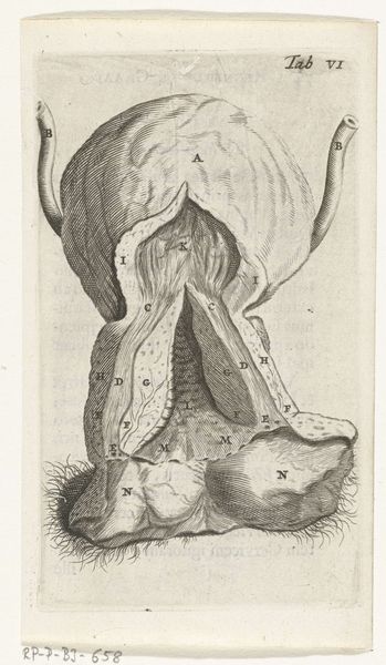 Curator: Let’s take a look at this striking drawing, "Anatomische studie van de heup," created around 1685 by Pieter van Gunst. It’s currently held in the collection of the Rijksmuseum. What's your immediate response to this piece? Editor: I'm struck by the clinical yet almost reverential depiction of bone. It's not just anatomical; there’s a tangible materiality conveyed through the shading and pencil work. It really brings forward the craft and time involved in its making. Curator: Absolutely. Van Gunst’s background deeply informs this piece; he was both a draughtsman and printmaker. This drawing, made with pencil, reflects the intense focus on anatomical accuracy that became central during the rise of scientific inquiry in the Baroque period, heavily influenced by Enlightenment thinking. How did representing the human body become so important in intellectual discourse? Editor: Because the body, as an object of both labour and vulnerability, became critical to notions of both productivity and social worth. These anatomical studies, with their meticulous rendering of bone structure, are ultimately a product of their environment, and a clear expression of labor and skill. But what about the object there near the bones? Curator: Yes, interesting isn't it? Some suggest this small flagon with death’s heads could signify 'memento mori' but perhaps also functions to give scale and draw the viewer's eyes downward? It serves to amplify the conversation around mortality and how scientific endeavors intersects with this human condition. How does its inclusion impact the perception and context around this anatomical subject? Editor: It elevates the function of what would be just an anatomical sketch. It's not *just* the bone structure being represented here; but labor and craftsmanship with specific purpose—almost like an item being offered in the process of making itself as a thing, and with all that human action involved, even if only indirectly via its connection with medicine. Curator: I agree, and seeing it through this lens is so enriching. Editor: Indeed. It really shows us how seemingly disparate elements like scientific illustration, craft, and social anxieties could intersect in a single piece. It gives me a newfound appreciation for the sheer number of hands involved with pieces like this.