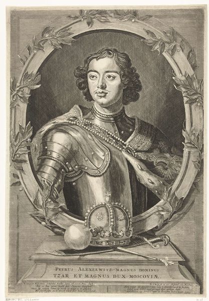 Jean-Marc Nattier painted this portrait of Tsar Peter I, capturing the ruler in shining armor. Here, the armor is not merely protective gear; it symbolizes power, strength, and readiness for battle, resonating with the classical ideal of the warrior-leader. Consider how this echoes the Roman emperors depicted in full military regalia, their portraits serving as potent symbols of imperial authority. The feathered helmet, discarded to the side, brings to mind similar motifs in Renaissance art, where such emblems often signified the virtues of prudence and valor. Yet, these symbols are not static. The depiction of Tsar Peter in this manner reflects a conscious effort to link his reign with the grandeur of past empires, invoking a sense of timeless authority. It is as if the artist seeks to tap into a deep well of cultural memory, where images of leadership and power are continually reshaped. This constant reimagining highlights the cyclical nature of history, and art's role in perpetuating archetypes.