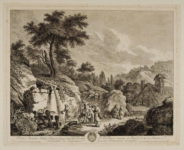 Editor: This is "Ruins on the Bank of a River" by J. L. L. C. Zentner. It evokes a sense of melancholy. What cultural echoes do you hear in this depiction of decay? Curator: I see the ruins acting as powerful symbols of lost civilizations, reminders of mortality and the passage of time. The crumbling arches also symbolize resilience. Do you notice how the figures in the foreground engage with each other, oblivious to the grandeur of the ruins behind them? Editor: Yes, it’s like they’re living in the present while surrounded by the past. The ruins almost become part of the landscape rather than a stark reminder. Curator: Precisely. This interplay speaks to the cyclical nature of history and the enduring human spirit. The image invites us to contemplate the weight of history.