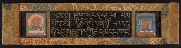 Curator: Here we have a page from a Kalpa Sutra, a Jain book of rituals, dating back to the 15th century. It's currently housed at the Metropolitan Museum of Art. What grabs you first about this leaf? Editor: Well, initially it feels quite dense. It’s obviously text, meticulously rendered, with these vibrant, almost jarring, red circles punctuating the script. What do you see in this piece? Curator: You know, 'dense' is a wonderful observation. To me, that density speaks to the devotion poured into its creation. The script isn’t merely functional; it’s art, each stroke imbued with intention. The red circles… yes, jarring, yet anchoring. They act like breaths in a long, complex chant. Editor: A chant! That makes sense. So, the visual is also kind of like a mantra? Curator: Precisely! Think about the visual rhythm. The black ink against the aged paper, the deliberate placement of the vermillion circles... and the evenness with the red guidelines running at top and bottom.. Does the text look haphazard? What words do you make out? Editor: Definitely not haphazard! There’s an incredible order to it, even if I can’t read the script, I notice an evenness to the text in lines. I wish I could read the specific mantras or messages. Curator: What might seem obscure to our eyes was incredibly significant in its time, revealing complex theological concepts through text and form. I like to imagine this in the hands of a Jain monk, the light catching the red pigment. Editor: It’s funny, now I’m picturing that monk too. It was that personal. It does feel a lot less dense and more intimate somehow now. Curator: Isn't it incredible how a shift in perspective can breathe new life into art? Always keep those questions alive, my friend. Always be curious!