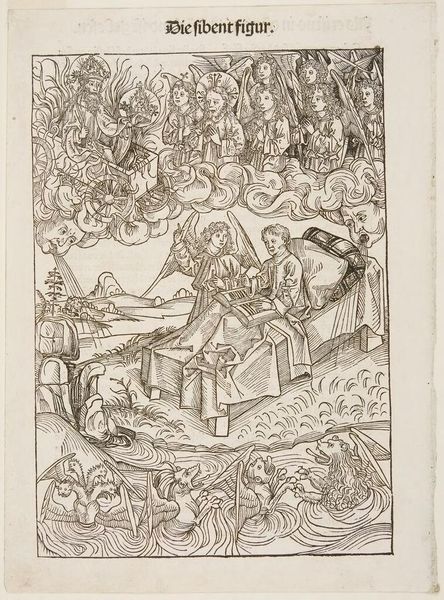 Editor: This is Hans Holbein the Younger's "The Throne of God and the 24 Elders." It's quite detailed, depicting a celestial scene. What strikes you about this work? Curator: It's fascinating to consider this work in the context of the Reformation. Holbein was working during a time of immense religious upheaval. How do you think this image of divine order might have functioned amidst such social and spiritual disruption? Editor: Perhaps it offered a sense of stability or a vision of ultimate authority in a world that felt increasingly chaotic? Curator: Exactly. And consider the power dynamics inherent in the depiction of God enthroned, surrounded by adoring figures. Whose power is being legitimized, and whose is being challenged? Editor: I hadn't considered it that way. Thanks, I'll definitely view Holbein differently from now on.