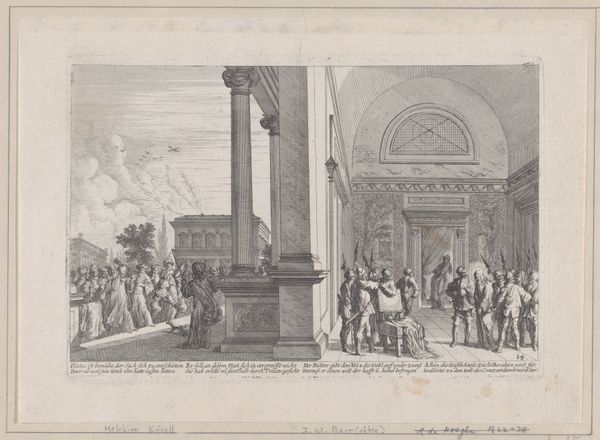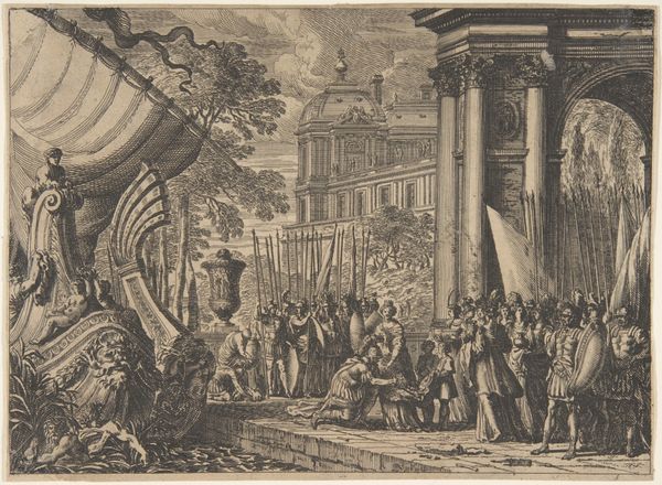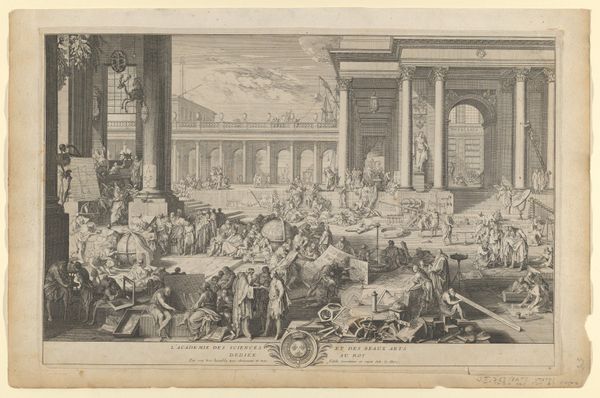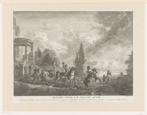 This print of the Temple of Isis at Pompeii, made by Edouard Gautier-Dagoty, is one of many that helped to fuel an 18th-century obsession with the ancient world. It's made using etching and aquatint, intaglio printmaking techniques that allow for fine lines and tonal gradations. The material quality of this print – its texture, color and form – plays a crucial role in communicating its message. The sharp lines and contrasting tones evoke a sense of drama and antiquity, emphasizing the texture of the ruins and the atmospheric lighting. The skilled techniques employed here reflect a tradition of meticulous craftsmanship. Yet, the print was intended for mass consumption, aligning it with the burgeoning print culture of the time. The production of such prints involved a division of labor, with specialized artisans contributing to the various stages of creation. While celebrating the glories of the past, these images also participated in the economic systems of their own time. Ultimately, understanding the materials, making, and context of this print allows us to appreciate its complexity and challenge traditional distinctions between fine art and craft.