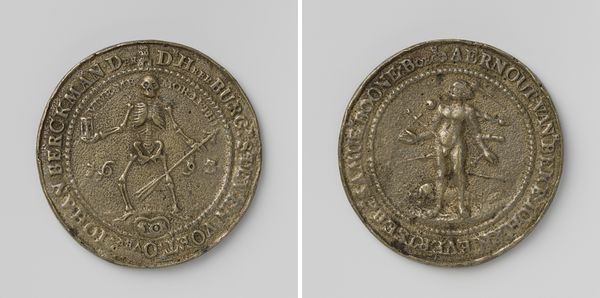 This medal portraying Karel V was crafted by the Monogrammist WS. The effigy of Charles V, Holy Roman Emperor, is here framed by the symbols of his authority. On the reverse, we see the crowned coat of arms, a complex emblem merging heraldic traditions to signify power. The crown, a near-universal symbol of sovereignty, finds echoes in ancient diadems and royal headdresses throughout history. It transcends mere regalia, embodying the very essence of leadership and the weight of responsibility. This motif persists, constantly re-emerging to legitimize authority, albeit in ever-changing forms. Such symbols are never static. They morph under the pressures of cultural memory and subconscious desires. The longing for a strong leader, the fear of chaos – these deep-seated emotions are continuously projected onto these emblems, influencing both their creation and interpretation. Each time the crown appears, it carries echoes of the past, yet reflects the anxieties of the present. The crown worn by kings, emperors, and even deities reflects our collective hopes and fears. Thus, emblems like this one can take on new meanings in each era.