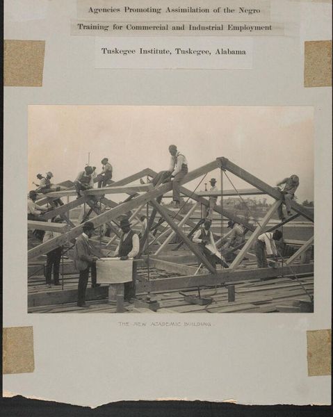 Curator: This haunting photograph captures a pivotal moment in American history. Taken by Alexander Gardner, it depicts the Execution of the Conspirators on July 7th, 1865. Editor: The composition strikes me immediately. The gallows dominate the foreground, brutally simple, while the crowd appears almost like a distant, silent Greek chorus. Curator: Indeed. Consider the symbolism of the gallows itself – a stark representation of justice, vengeance, and closure after the assassination of President Lincoln. It is a visual manifestation of a fractured nation seeking catharsis. Editor: And the light! The stark contrast emphasizes the textures of the brick wall and rough-hewn wood, giving the scene a hyper-real, almost unbearable presence. Curator: It’s a chilling reminder of the human capacity for both profound grief and calculated retribution, a dark chapter permanently etched into the national psyche. Editor: Precisely. Seeing it now reminds us how an image, through its composition, can crystallize such complex emotions.