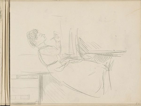 Editor: So this is Isaac Israels' "Two Standing Women", likely created between 1892 and 1900. It’s a pencil drawing, seemingly a preliminary sketch. I’m struck by how raw and unfinished it feels. What stands out to you when you look at this work? Curator: It's crucial to recognize the work for what it literally *is*: pencil on paper, a cheap, mass-produced commodity in the late 19th century. Israels' choice challenges the established hierarchy of art materials. How does this directness of process, the immediacy of the pencil line, affect our understanding of representation, particularly the representation of women at the turn of the century? Was this a study towards a more "finished" painting, and does that influence our understanding of its value? Editor: I see what you mean. It feels like a deliberate act, maybe even a comment on the commodification of art itself? Curator: Exactly! Think about the societal context: the rise of industrialization and mass production made materials like paper and pencils widely accessible. Israels' embraces the "lowly" medium. By doing so, is he commenting on the accessibility of artmaking itself, democratizing the process? And who are these women? What class do they belong to? The pencil lines obscure definitive detail and are quick, cheap marks to apply to the page, therefore the production cost of this image remains low. What are your thoughts on that? Editor: I guess that changes my initial perspective a bit. I saw it as unfinished, but now I’m wondering if that “unfinished” quality is actually a deliberate choice, highlighting the process and the materials. Curator: Precisely. It compels us to consider not just the 'what' - the figures - but also the 'how' and the 'why' of its creation. By decentering traditional oil paintings and elevating humble materials we are acknowledging an industrial shift that sees artwork as a material object created for a societal role or transaction. Editor: I never really thought about it that way, viewing it from the lens of production and the changing material landscape. Thank you. Curator: My pleasure, by thinking about those key themes of labor, consumption and process, we reveal a much wider artistic discourse.