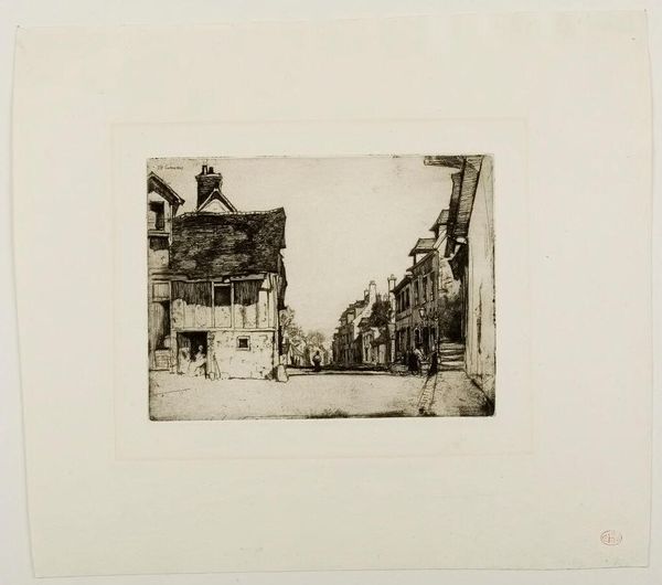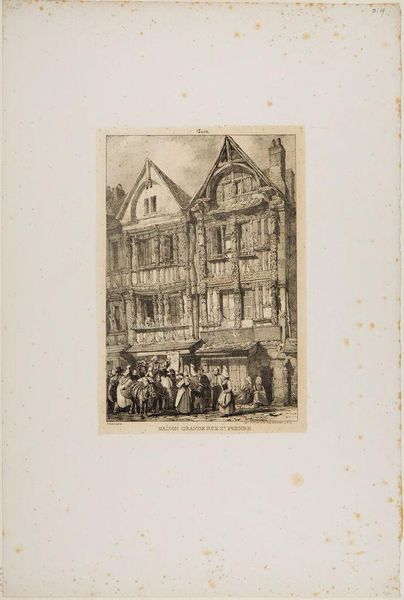 Editor: This is Richard Parkes Bonington's "Interior of a courtyard: house on the Rue Saint Veronica at Beauvais." It’s a detailed print, and it makes me wonder about the lives of the people who lived there. What can we unpack from this seemingly simple scene? Curator: It’s tempting to romanticize the past, but Bonington’s choice to depict this architecture raises questions. Who had access to these spaces? What social dynamics are at play in the courtyard? Look at the figures he includes and consider their relationships to this structure. Editor: So it’s not just about the building, but also about who occupies and interacts with that space? Curator: Precisely. Bonington is showing us a slice of life, but whose life, and at what cost to others? Considering the social fabric woven into the stone helps us deconstruct idealized notions of the past. Editor: I never thought of it that way. It definitely makes me see the image, and history, differently. Curator: Exactly. Art gives us a window into complex social realities.