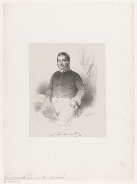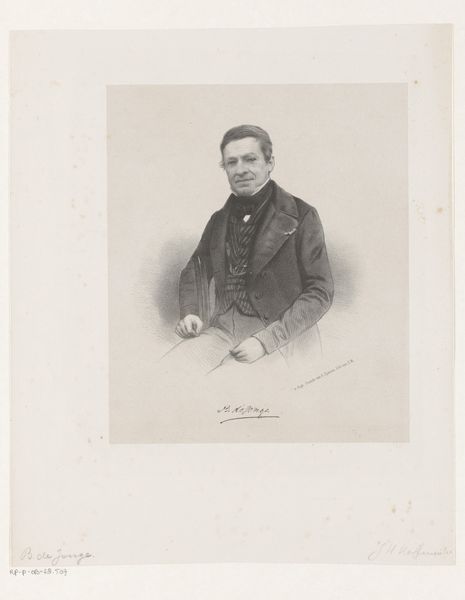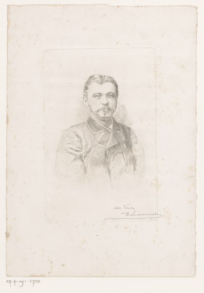This is Joseph Arnold Demannez's portrait of Jean-Baptiste Madou, made with engraving. Demannez and Madou were both Belgian artists operating in the 19th century, a period marked by significant social and political change as well as a growing middle class with new cultural values and a desire for portraiture. Considered within this context, this portrait raises questions about identity, representation, and societal status. The sitter, Madou, is depicted with a certain formality, which speaks to the conventions of bourgeois portraiture during this era. But what does it mean to portray a fellow artist? Is this an act of homage, a statement of artistic solidarity, or something more complex? As you gaze upon this image, consider the relationship between artist and sitter, and the many layers of identity and representation at play.