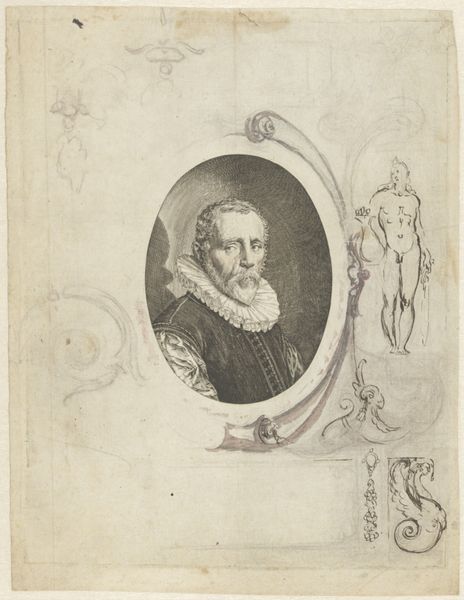 Editor: So this is "Study for Portrait of a Man in an Arm Chair," by Christian Josi, around 1821. It's graphite, coloured pencil, and print on paper. It has a sort of antique feel. How do you interpret this work? Curator: I see it as a document of taste and access. Josi’s “Collection d'imitations” speaks to the 19th-century art market, where reproductions allowed broader audiences to engage with Old Master drawings. The drawing emulates a specific historical aesthetic. Does the work prompt you to consider how "authenticity" functioned then versus now? Editor: That's interesting. I hadn't thought about the role of reproduction. So it’s less about the man himself, and more about making art available to different groups of people? Curator: Precisely! And it brings into play questions about the politics of collecting, right? Who gets to own original art, and who has to settle for imitations? Was Josi making art more democratic, or further reinforcing a hierarchy? Editor: I guess both. It’s democratizing access while also reminding you that you’re not seeing the ‘real thing.’ I wonder how people at the time reacted to that. Curator: Exactly! These are questions worth exploring as we look at historical works within present-day social structures and institutions. Editor: That gives me a whole new perspective on art and how it circulates through society. I really learned a lot. Thanks! Curator: Indeed. Thinking about art as part of a larger cultural and economic system is a powerful lens. I found your observation on authenticity quite insightful too.