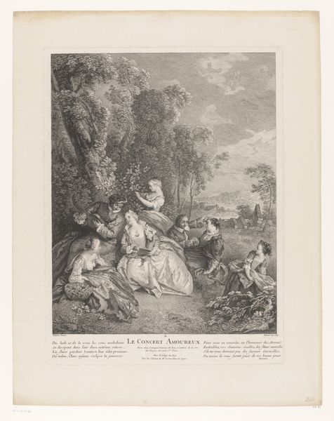 Editor: We’re looking at "Landscape with Shepherd and Cattle by a Bridge over a Waterfall," an engraving by Noël Le Mire, dating back to the 1760s. The detailed lines give it a calm, pastoral feel. How do you read this piece? Curator: Considering this print from a materialist perspective, the very act of engraving speaks volumes. The labor involved in creating these detailed lines, the repetitive motions… It wasn't just about aesthetics. This piece and similar artworks facilitated the distribution of images to a wider audience, creating a kind of visual market. The image becomes a commodity itself, circulated and consumed. What does this circulation say about artistic labor during this period? Editor: That’s a good point. I hadn't thought about the labor involved. Does the choice of landscape have any significance in the material context? Curator: Absolutely. Landscapes, especially idyllic ones like this, often served as visual representations of land ownership and rural economies. Think about who would be commissioning and purchasing these prints – the landowning gentry, the burgeoning merchant class… They’re literally buying and consuming an image of their aspirations and their connection to land and labour. Can you consider how that is expressed in the artistic choices? Editor: I see... So the landscape itself becomes a symbol of wealth and power, reproducible and consumable. The detail of the animals suggests a healthy livestock. And that bridge perhaps implies infrastructure. Curator: Precisely! The print becomes more than just a pretty picture; it becomes a material object embedded within complex economic and social networks. Examining the materials – the paper, the ink, the copperplate – reveals the technological advancements and economic structures of the time. What did you learn while analysing this artwork through this new perspective? Editor: That’s a really interesting perspective. Looking at it from a materialist lens changes everything – I now see it as a record of labor and class relations of the time. Thanks for broadening my perspective.