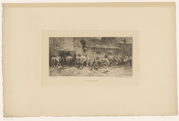 Curator: John Reekie's photographic print, "A Burial Party, Cold Harbor, Virginia," captures a haunting scene. What strikes you first? Editor: The sheer starkness, I think. It's not just death; it's the casual, almost indifferent, way the bodies are being handled that really sticks with you. Curator: The photograph shows African American soldiers collecting the remains of Union soldiers after the battle. Reekie’s work really highlights the role of formerly enslaved men in the war's aftermath. Editor: Absolutely, and that's the painful irony, isn't it? These men, only recently freed, are now tasked with this grim work. How do you even begin to process that? Curator: It speaks volumes about the labor assigned to Black soldiers, and the visual contrast is stark. It pushes us to remember whose bodies were often considered disposable. Editor: It does prompt a deeper reflection, doesn't it? It's more than just a historical record; it's a visceral experience that forces us to grapple with the war's complexities. Curator: Indeed, its starkness invites a confrontation with the cost of conflict and the uneven burdens of history. Editor: That’s it, I think. It really leaves you in a quiet, contemplative space, pondering the cost of it all.