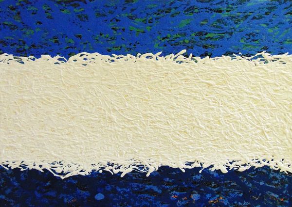 Requena Nozal’s ‘Espuma VI’ presents a compelling study of visual symbols, particularly the stark contrast between the celestial blues and the profound blacks. The spuma or foam, rendered in bursts of white, evokes the primal chaos from which forms emerge. This imagery has echoes in ancient cosmologies, where the world arises from a watery abyss. Recall Botticelli’s Venus, born from the sea foam, a motif that captures the life-giving essence of the ocean. The foam, an edge between water and air, has been a symbol of both purity and transience across many cultures. But in ‘Espuma VI’, the dark band looms below, a horizon of the unknown. The tension between light and dark plays on our subconscious, reflecting a deeper struggle between creation and the void. It's a cycle, ever recurring, as forms dissolve back into the abyss, only to be reborn again.