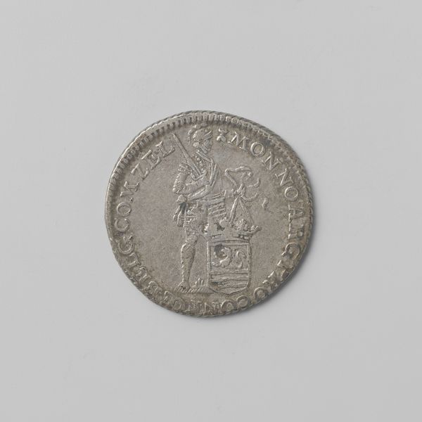 This Zeeuwse quarter silver ducat was struck by the Province of Zeeland in 1791. The coin presents a circular composition, its form and metallic texture immediately suggesting value and authority. The design is dominated by the figure of a standing man, positioned beside a complex heraldic shield. Above the shield is an intricate design of a seated lion with arrows. The outer inscription creates a semiotic boundary, framing the central images and reinforcing the coin's function within a structured economic and political system. Notice how the symbols of power and identity are rendered. The design on the coin presents questions about representation and value, questioning how a small object can embody larger socio-political meanings. This ducat engages with the structuralist idea that objects often function as signs within a broader cultural language.