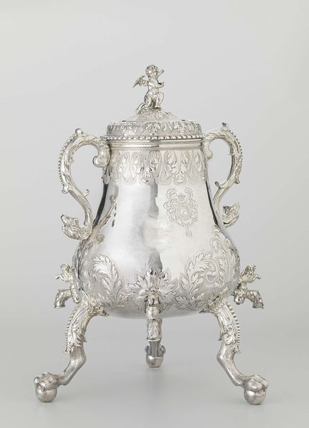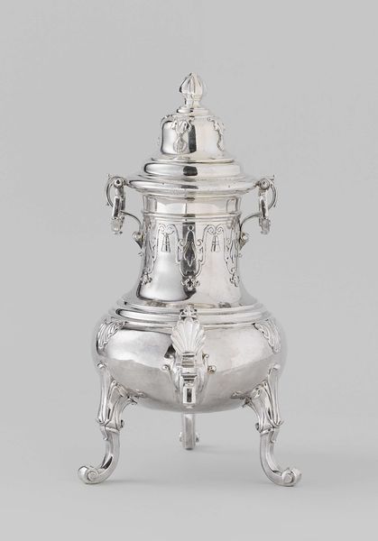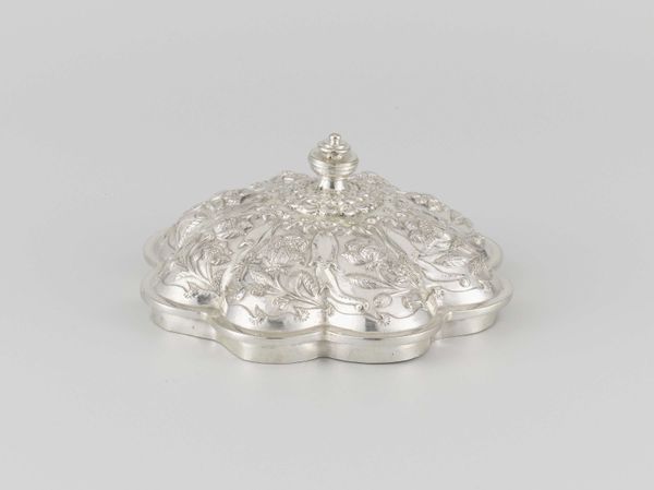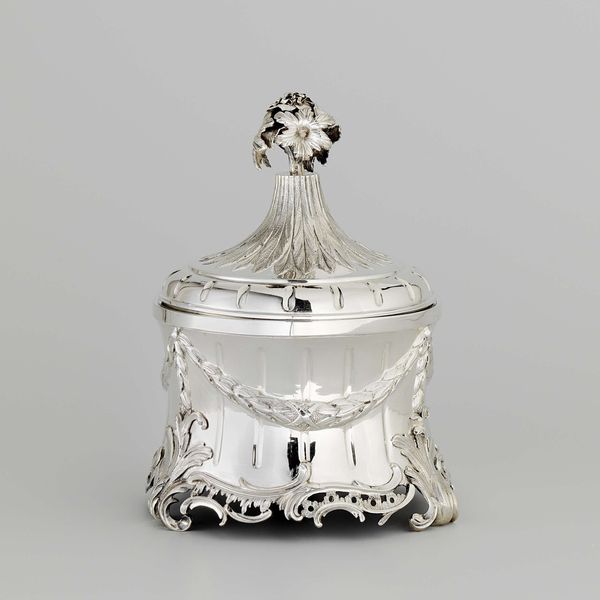 Editor: This is a silver tobacco box made in 1757 by Arnoldus Coolhaas. It’s so ornate! All that detail makes it look incredibly luxurious. What can you tell me about it? Curator: The opulence isn't merely aesthetic; it’s deeply connected to 18th-century Dutch trade and colonialism. Silver, the very material, speaks of extraction and global power dynamics. Who had access to this luxury and what did their consumption signify? Editor: So, the act of using a tobacco box like this connects someone to the larger economic systems of the time? Curator: Precisely. Consider the labor involved: from the mining of the silver to the crafting by silversmiths like Coolhaas. These artisanal skills held value, but were also dependent on global supply chains and colonial exploitation. Was it made for personal or collective use? How did the intended setting of its use influence Coolhaas' craft choices? Editor: I hadn't thought about all that labor and trade wrapped up in something so small. Did the style of the box also have some economic context? Curator: The ornate Rococo style itself was a statement. It indicated the wealth and the cultural aspirations of the owner. This object exemplifies power through consumption; the materiality underscores status and taste but simultaneously relies on vast exploitative networks of production and consumption. What societal transformations can be seen reflected in this piece? Editor: This makes me rethink my initial perception. I guess beauty and luxury can be tied to some darker histories. Curator: Absolutely. And this recognition encourages a richer, critical perspective. The study of the materiality allows you to perceive these links more substantially. Editor: Thanks, I’ll never see a fancy silver box in the same way.