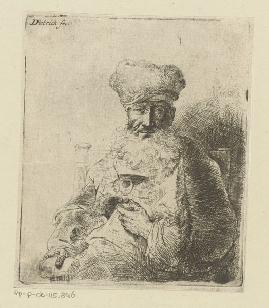 Giovanni Benedetto Castiglione created "Head of an old man with a turban facing left" as part of his "Small Heads in Oriental Headdress" series, using etching techniques. Set against the backdrop of 17th-century Europe, a time marked by burgeoning trade with the East, Castiglione's work reflects a growing fascination with, and often romanticized, depictions of "oriental" figures. The series is evocative of the complex, often colonial, gaze through which Europe encountered the cultures of the Middle East and Asia. Consider how Castiglione, as a white European male, was positioned to interpret and represent cultures vastly different from his own. What does it mean to portray someone through the lens of the "other"? Castiglione’s detailed rendering of the turban and beard invites viewers to consider the intersection of identity, representation, and cultural exchange. The artwork prompts us to reflect on the power dynamics inherent in cultural representation and the importance of understanding the diverse narratives of those who have been historically marginalized.