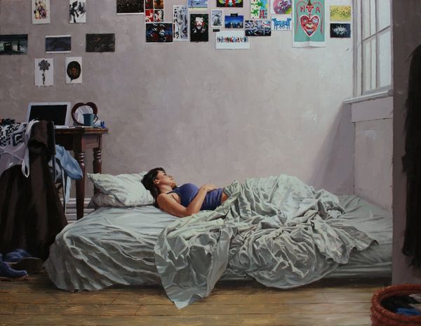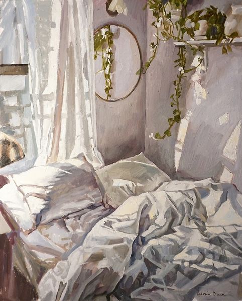 Nick Alm painted "Morgonsol," and it’s a painting about waking up, or trying to. The whole thing's done with these layered, almost translucent brushstrokes, like he’s building up the image slowly, letting the light seep through. The texture feels smooth, almost skin-like. Look at how the light from the window just bleeds into the gray wall. It’s so subtle, but it gives the whole scene this quiet, dreamy quality. And that light is everything, right? I see a connection with Vilhelm Hammershøi, who used light and shadow to create a mood that is both intimate and distant. Paintings are conversations across time, and a painting like this one is a good example of how art embraces ambiguity and multiple interpretations.