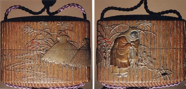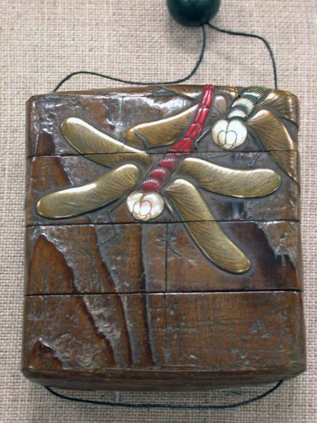 This exquisite Inrō with Crane and Plum Tree was crafted by Ogata Kōrin in Japan. It’s made of lacquered wood, adorned with delicate inlays of mother-of-pearl. Looking closely, you'll notice the contrast between the warm, earthy tones of the lacquer and the iridescent shimmer of the mother-of-pearl. The crane and plum tree motifs are meticulously inlaid, each piece of mother-of-pearl carefully shaped and placed. This wasn't just about surface decoration; it was about transforming humble materials into something precious. The process involved multiple layers of lacquer, each requiring skilled application and careful polishing. Then came the intricate work of cutting, shaping, and setting the mother-of-pearl. Kōrin was working within a long tradition of Japanese lacquerware, but pushing its boundaries with his innovative designs. This kind of craftsmanship demanded time, patience, and a deep understanding of materials. Ultimately, this Inrō transcends its function as a mere container; it becomes a testament to the artistry and dedication of its maker, blurring the lines between craft and high art.