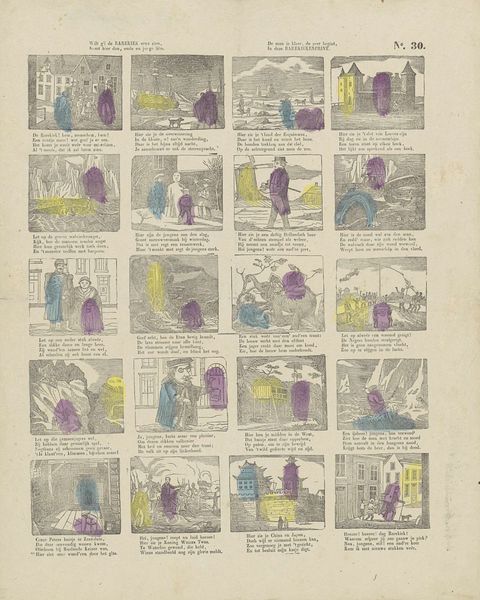 This is ‘Living Pictures of Various Biblical Stories’ by Johannes Kannewet, printed in Amsterdam. Though undated, the print’s style and content suggest a production date sometime in the 17th or 18th century. Printed books and pamphlets were central to the rise of a Dutch public sphere, and illustrations were crucial for disseminating ideas and narratives. Here, a series of small scenes offer a visual summary of key episodes from the Bible. These pocket-sized prints were designed for a mass audience, offering a clear visual summary of the scripture. The decision to illustrate these Biblical scenes was carefully considered, taking into account the beliefs, customs, and preferences of the intended audience. To truly understand prints like these, we need to look beyond the art itself. Scholarly research into the history of printmaking, publishing, and religious culture in the Netherlands can reveal the complex social dynamics that shaped the creation and reception of such imagery.