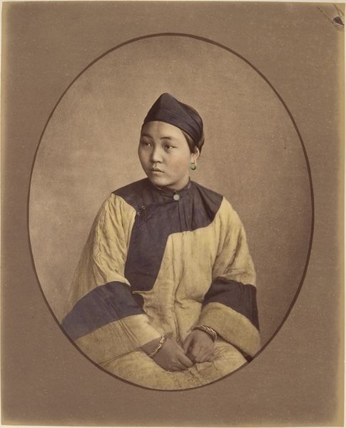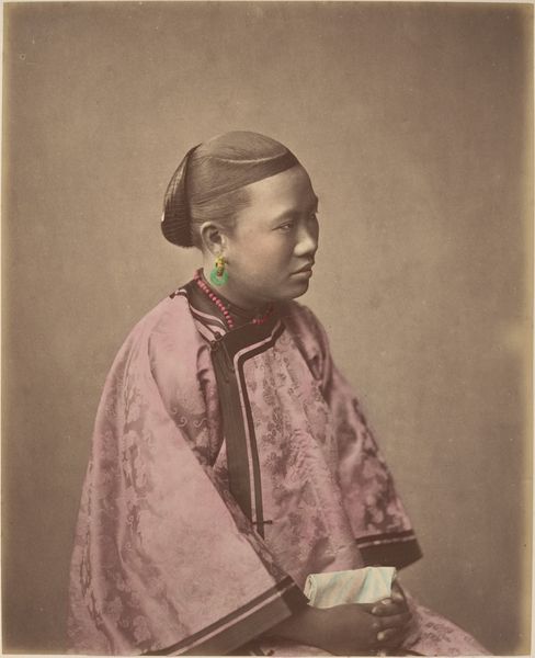 This is a portrait of a young man, made by Woodbury & Page. The photographic print is an albumen silver print, a process that was widely used in the 19th century for its sharpness and detail. The process involves coating paper with a layer of albumen from egg whites, then sensitizing it with silver nitrate. The negative is then placed on the prepared paper, and exposed to light, creating a detailed image. Consider the social context: photography emerged as a powerful tool of documentation and representation, but also of colonial power. The making of a portrait like this was often an act of cultural exchange, with the photographer capturing the likeness of a person from a different cultural background. How much control did the sitter have over the image made of him? The very act of posing for a photograph involved labor, both on the part of the photographer and the sitter. Understanding the materials and processes involved in creating this photograph allows us to consider the complex social and cultural dynamics at play in its making.