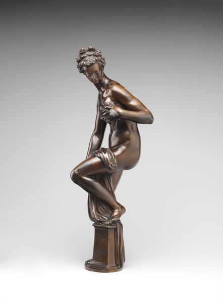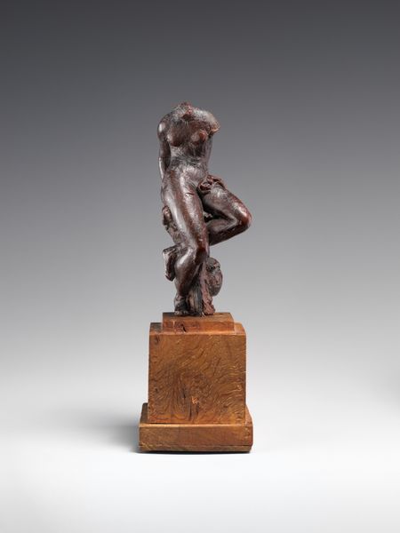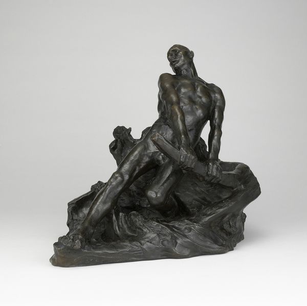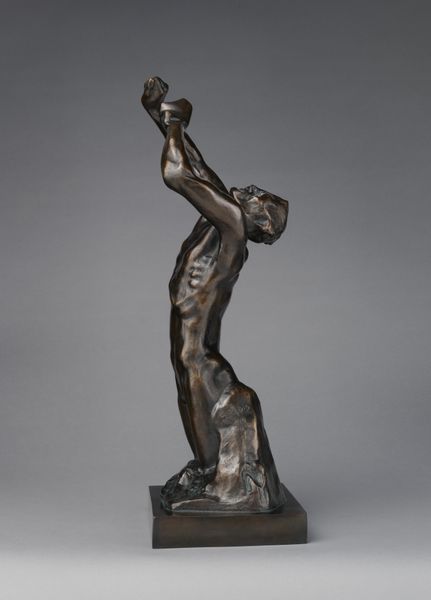 Curator: What strikes you first about this bronze sculpture, titled “Study for ‘The Secret’” by Auguste Rodin? Editor: There's a profound sense of yearning captured within the hands. They almost create a vessel, as if holding onto something incredibly precious, maybe even a memory or dream. It’s tender but with an underlying anxiety; it reminds me of holding a fledgling bird. Curator: Yes, I see that. The focus on hands is characteristic of Rodin; he saw them as expressive as faces. In fact, some hands ended up as sculptures of their own right, like this one, exploring gesture and feeling independently of the whole figure. The very title alludes to some shared intimacy. What kind of "secret" is held between two people, or, in this case, by those hands? Editor: Perhaps the secret lies in the space between the hands. They’re linked, but not entirely enmeshed. I think there is a tension in knowing and yet also holding something back. It's that push and pull that characterizes human connection so acutely. Look, the way the light plays on the rough texture also creates a shadow that nearly hides his signature! A kind of secret right there. Curator: Good point. The symbolism goes beyond physical touch. Hand gestures throughout history can represent benediction, creation, witness. It becomes an interesting question as to whether the “secret” involves collaboration, or even manipulation? Is this exchange entirely consensual, given the weight, literally and figuratively, these hands possess? Editor: You have quite a cynical interpretation! But maybe that's what’s so wonderful about it. It invites us to bring our own narratives of secrets, the stories we tell ourselves and each other. Curator: Absolutely! Art reflects the human condition, doesn't it? Whether it confirms our convictions or confronts our perceptions. That invitation to introspection is the power it holds. Editor: Well, that was definitely a deep dive into something so physically small, yet immensely powerful. Makes you think about what we reveal, what we hide, and why.